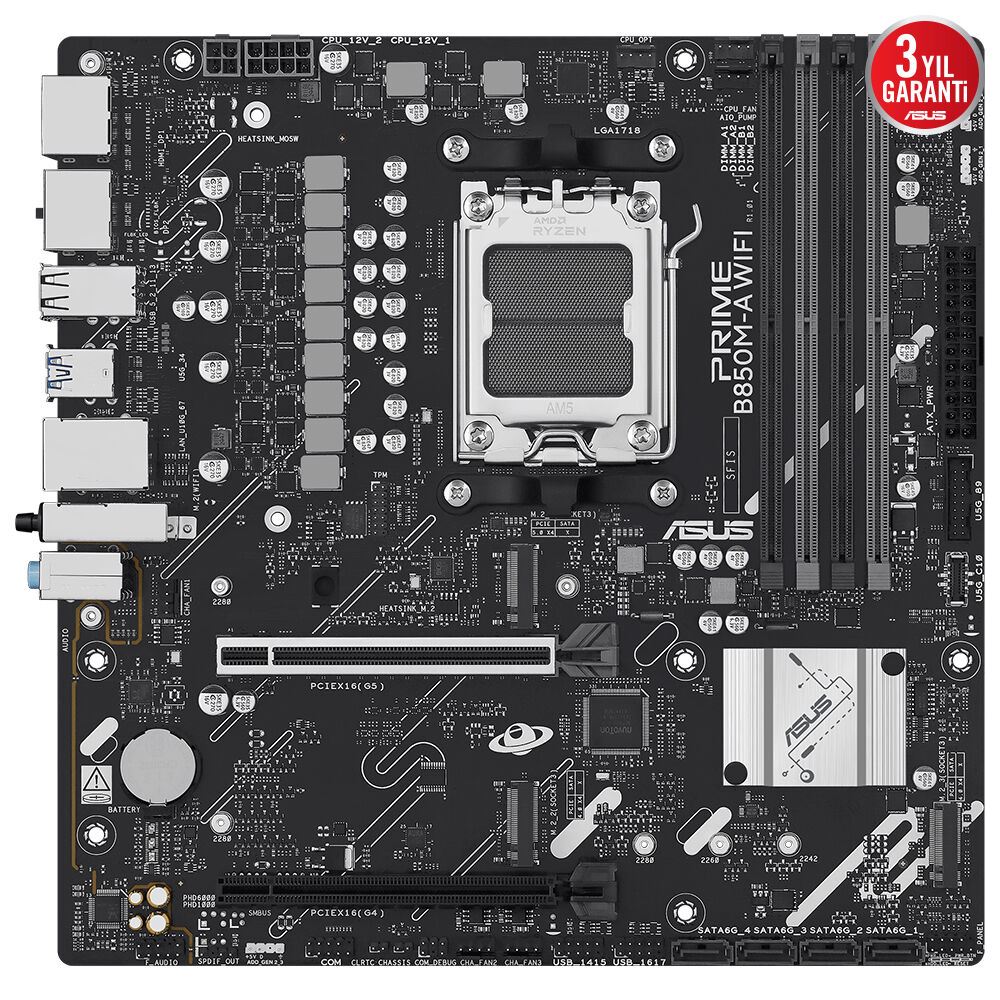 Asus Prıme B850m-a Wıfı Ddr5 8000mt/s 1xhdmı 2xdp 3xm.2 Usb3.2 Matx Am5 (amd Am5 9000/8000/7000 Serileri İle Uyumlu)
