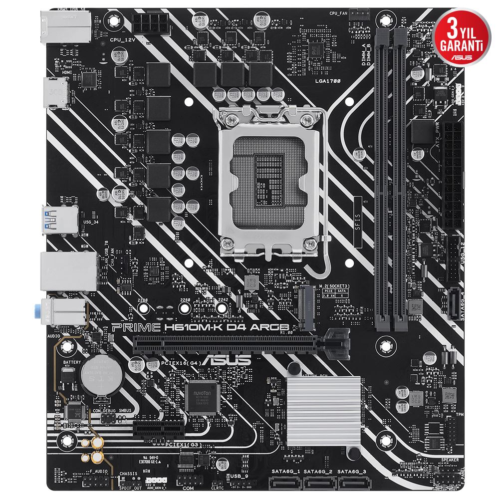 Asus Prıme H610m-k D4 Argb Ddr4 3200mhz 1xhdmı 1xm.2 Usb 3.2 Matx 1700p (12. / 13. Ve 14. Nesil İşlemci Uyumlu)