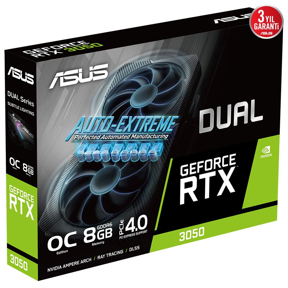 Asus Vga Dual-Rtx3050-O8g-Nvıdıa-Geforce-Rtx 3050-8gb Gddr6-128bit-1852mhz-Oc-Hdmı-3xdp-Ekran Kartı