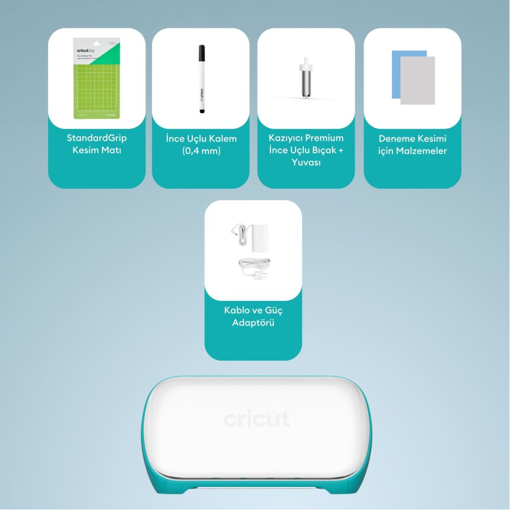 Ütüyle yapıştırma, karton, vinil, kağıt ve Smart Materials™ (Uyumlu malzemeler için bkz. cricut.com/materials) dahil 50'den fazla malzemeyi keser