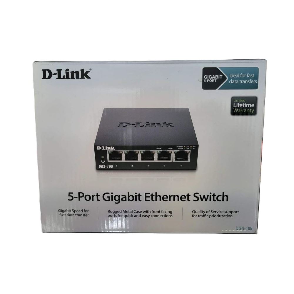 D-Link DGS-105, 5 adet 10/100/1000 Mbps portu ile ev ve küçük ofis ağları için ideal, yüksek performanslı ve yönetilemez bir Gigabit switch'tir. Bu switch, cihazlarınız arasında hızlı ve güvenilir veri iletimi sağlayarak ağınızın genel performansını artırır.
