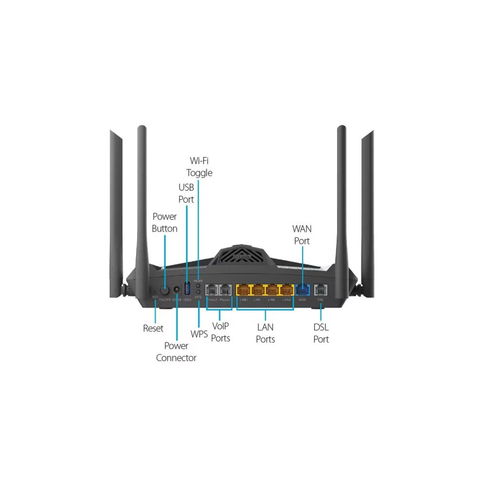 D-Link DSL-X1852E Kablosuz Dual Band AX1800 ve VoIP destekli VDSL/ADSL2+ Modem Router
