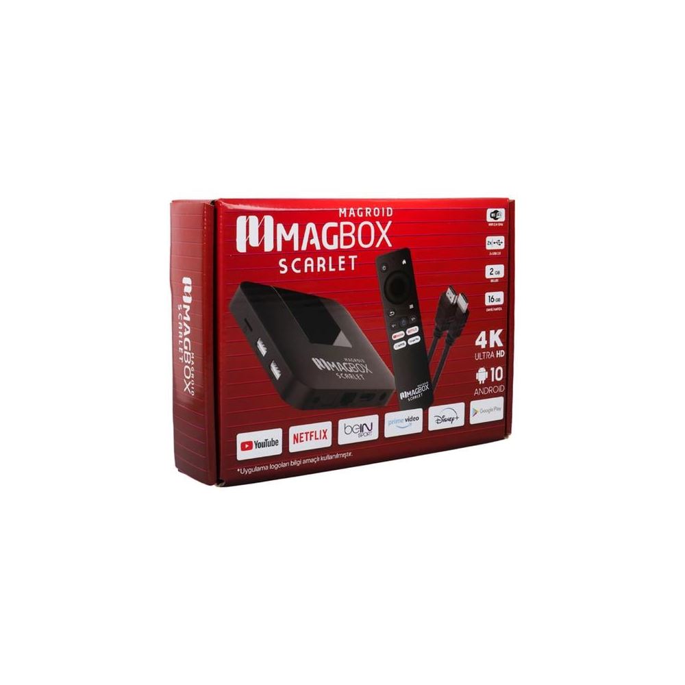 Magbox Magroid Scarlet, evinizde veya ofisinizde dijital eğlenceyi zirveye taşımak için mükemmel bir seçenektir. Yüksek performanslı donanımı ve geniş bağlantı seçenekleri ile çeşitli ihtiyaçları karşılar. Android 10 işletim sistemiyle birlikte gelen bu kutu, Netflix, YouTube, Spotify gibi popüler uygulamaları destekler ve akıllı TV deneyimini geliştirir.