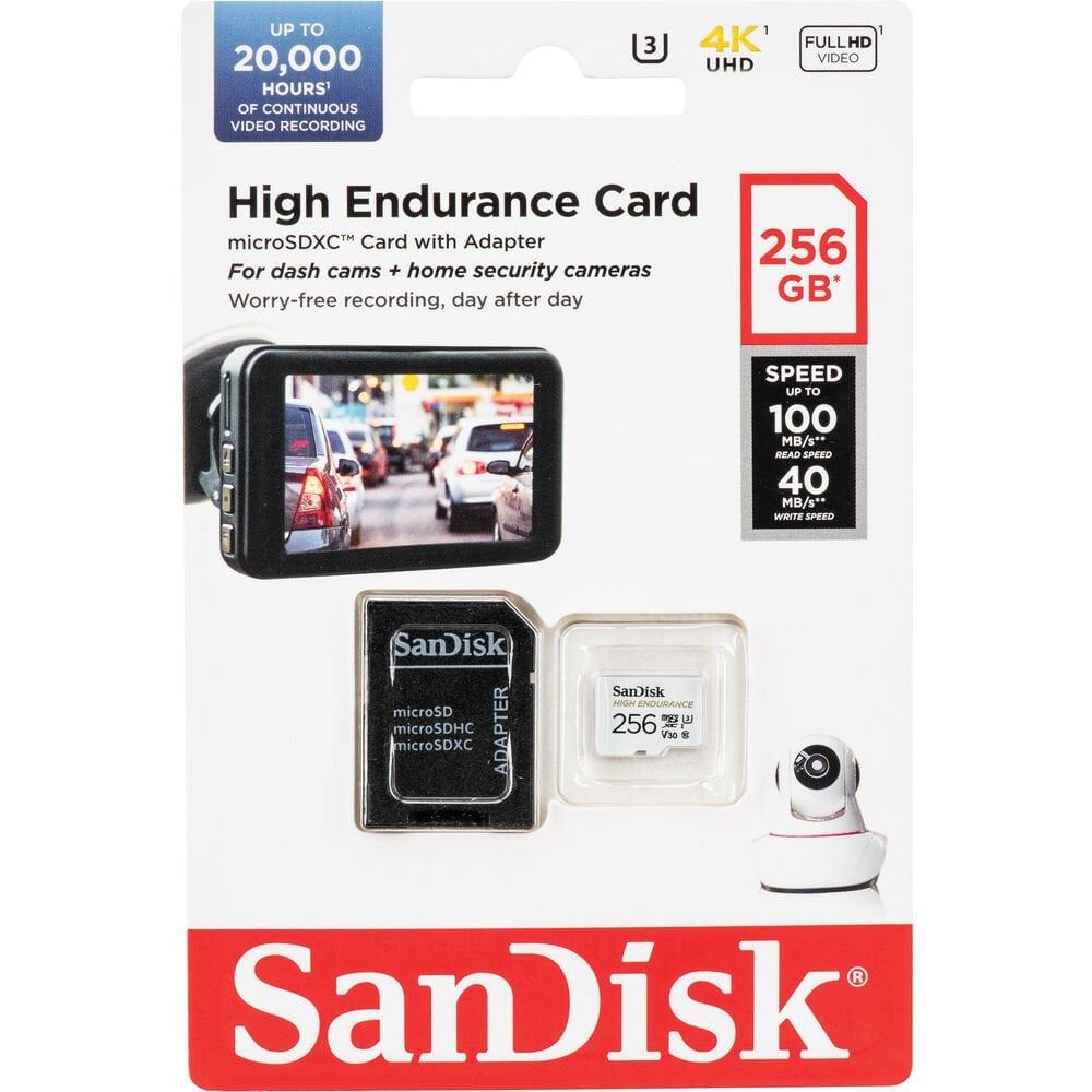 Sınıf 10 ve video hızı U3 ve V304 olarak derecelendirilen SanDisk® Dayanıklılığı Yüksek microSD™ kart, Full HD veya 4K kayıt yapacak hıza sahiptir.3