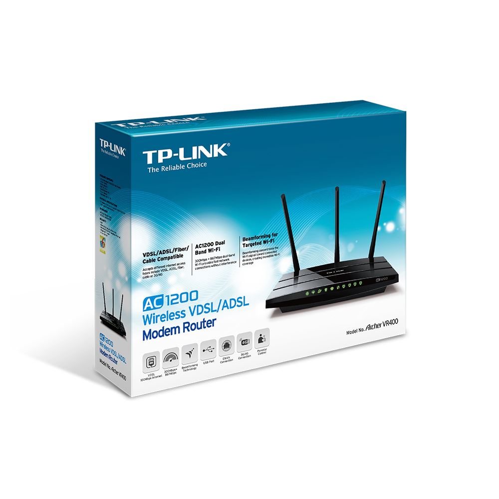 TP-Link Archer VR400 1200 Mbps Kablosuz Dual Band VDSL/ADSL Modem/Router